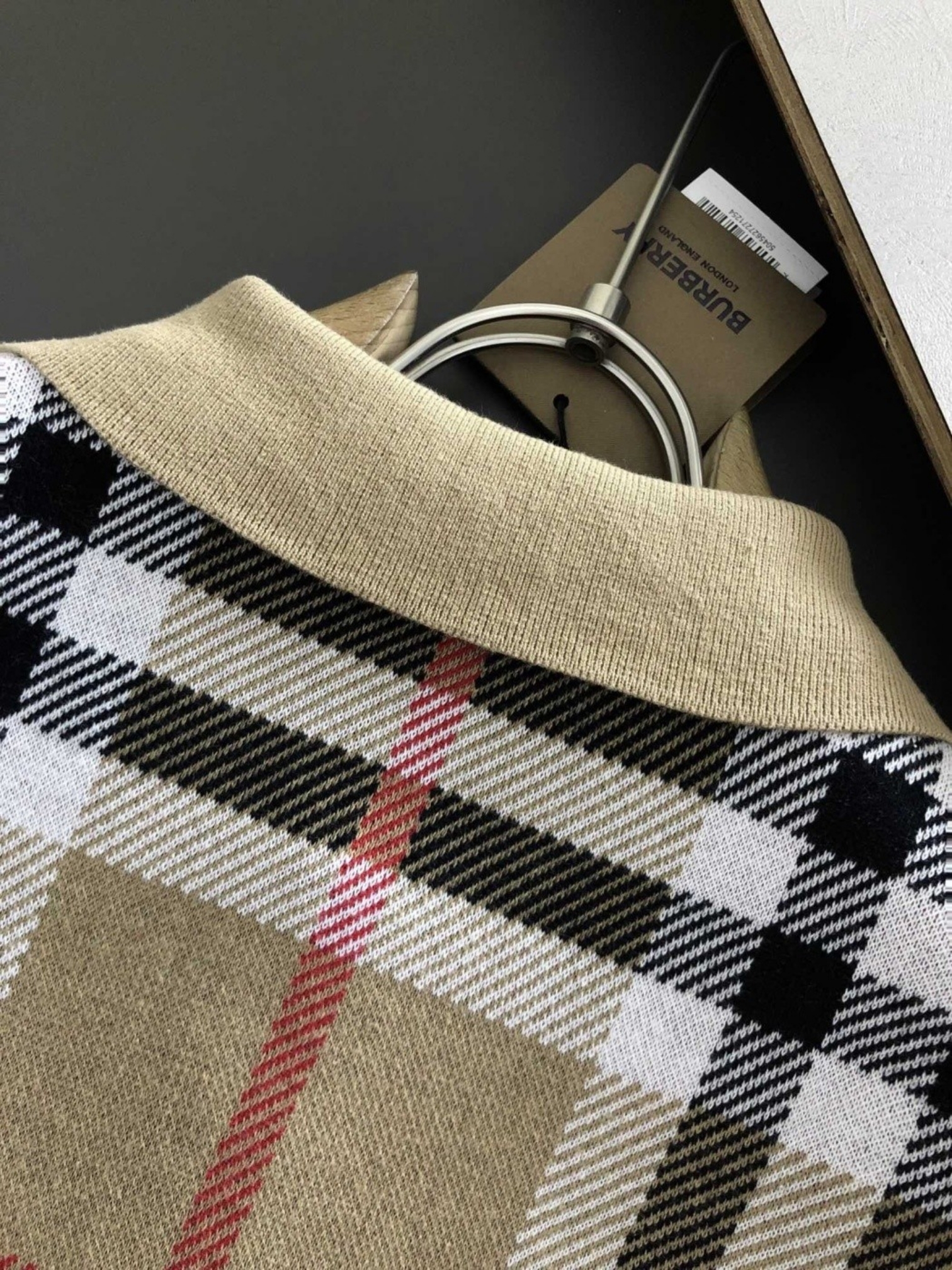 New Burberry Top grade retro plaid classic knitted fabric counter style jacquard line polo counter short sleeves