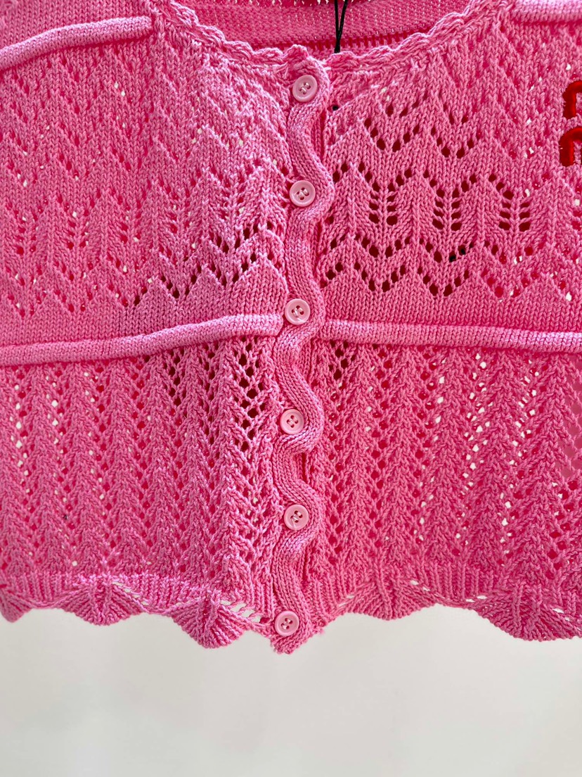 DetailTop quality miu home * 23 summer new hollow holiday style knitting Camisole two color three size
