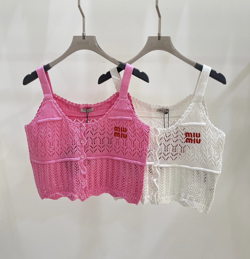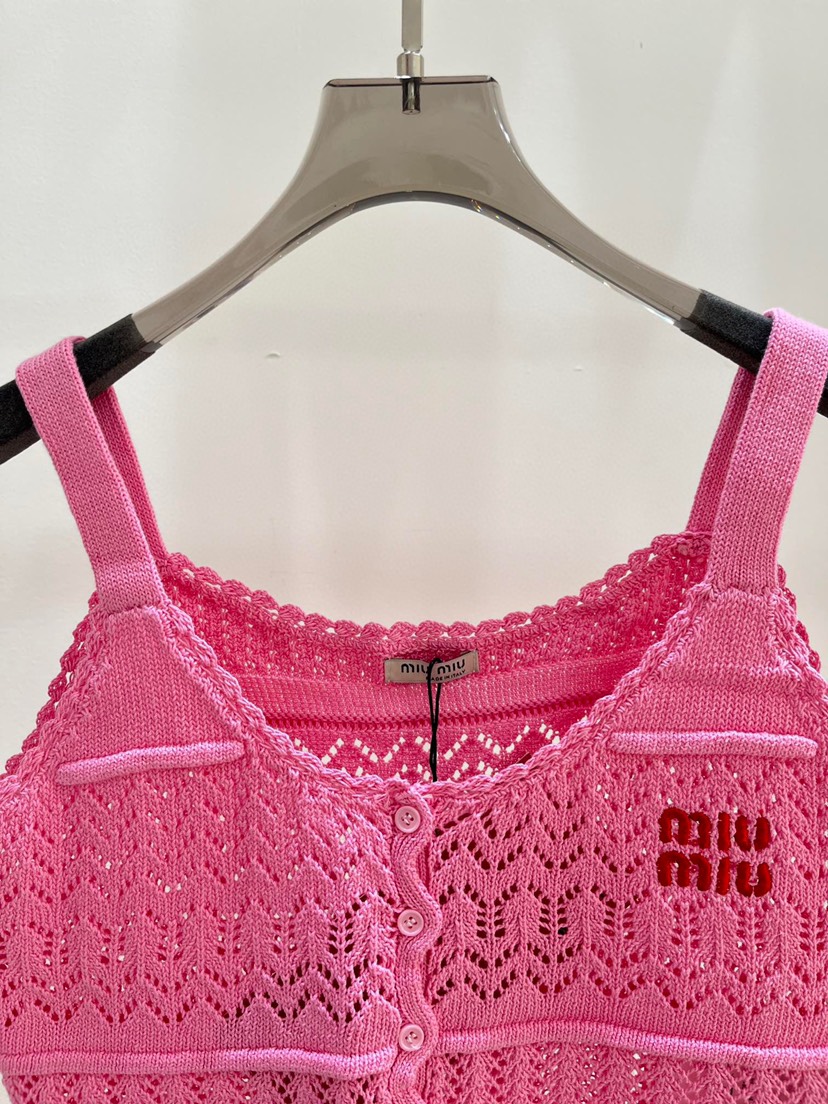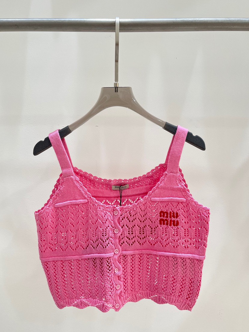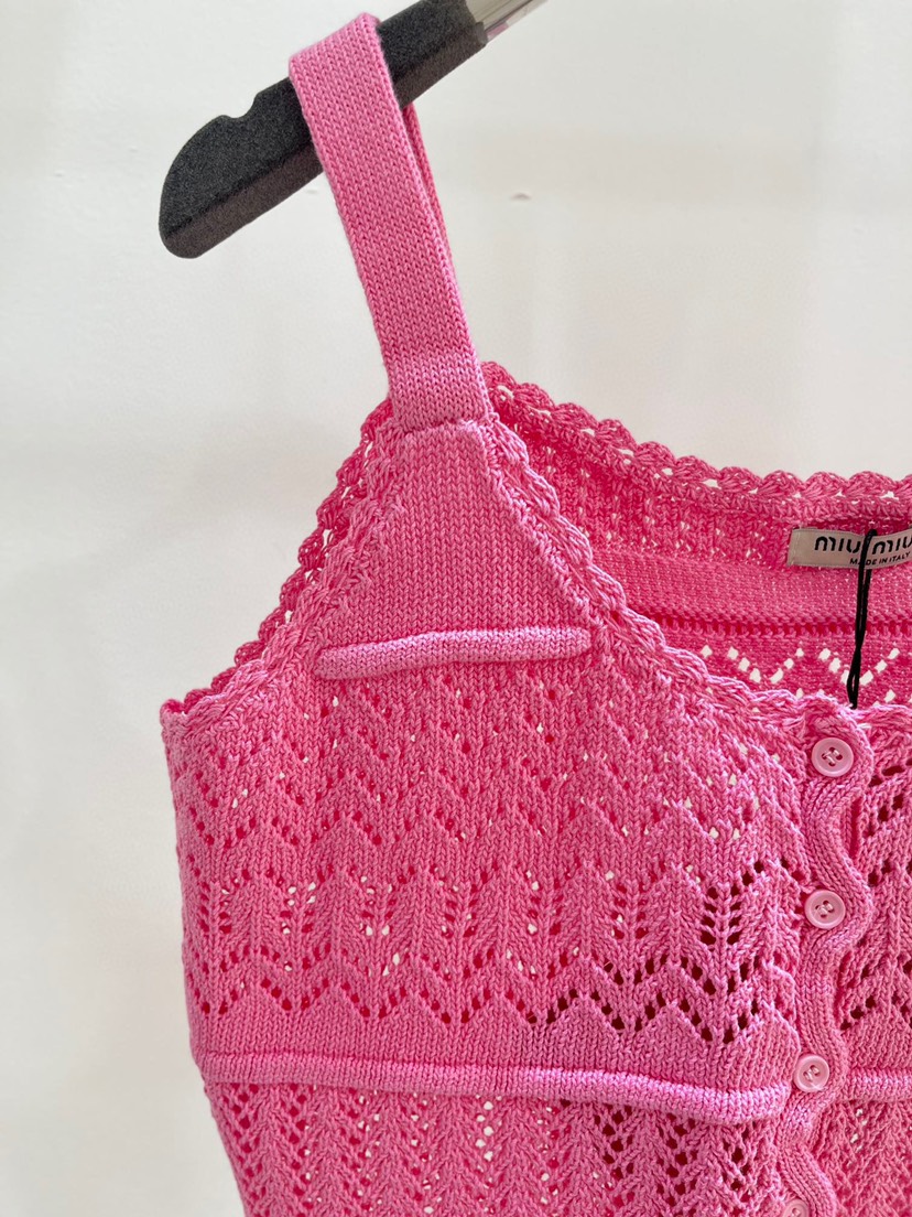 New Miu miu Top Quality 23 Summer New Hollow Holiday Style Knitted Camisole