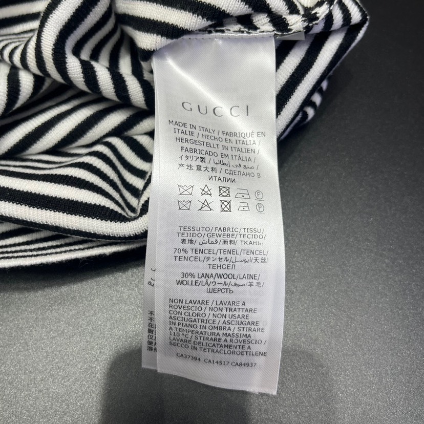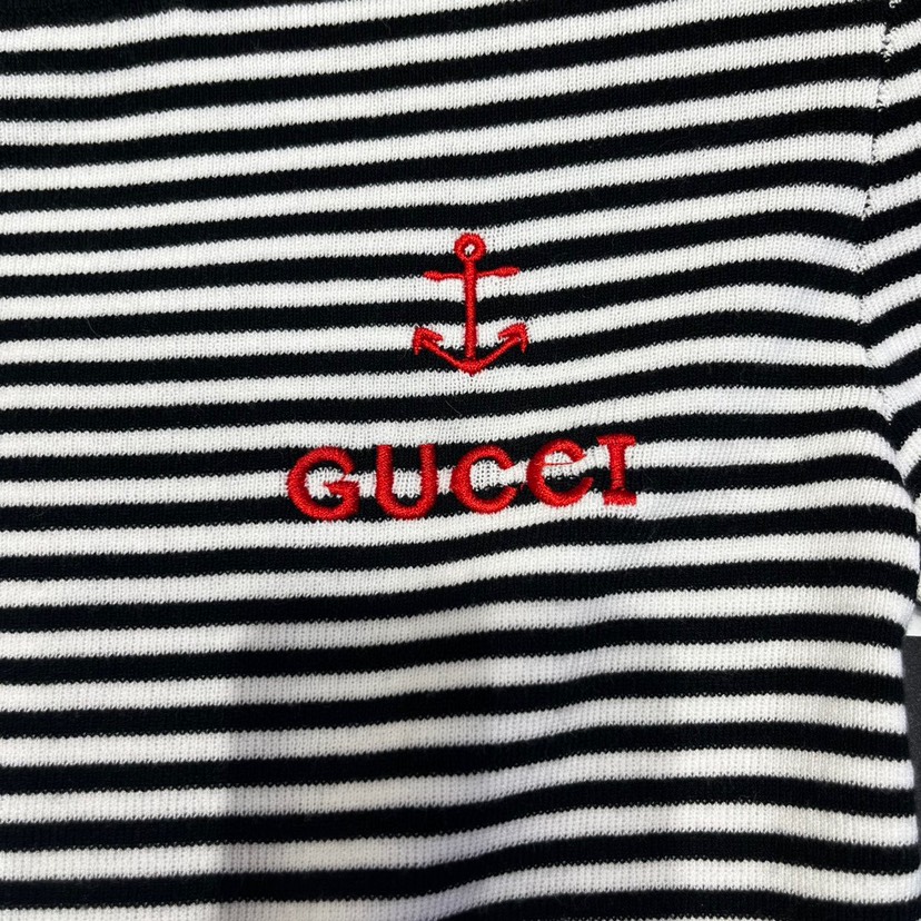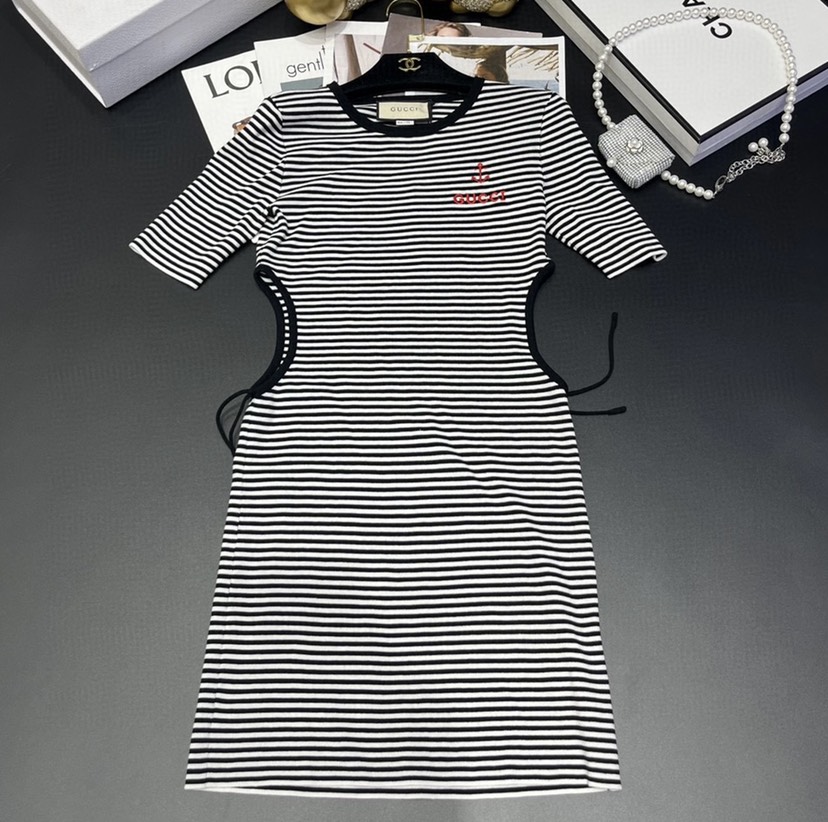 Home / New Gucci 23 Spring/Summer New Contrast Stripe Hollow Waist Letter Knit Dress