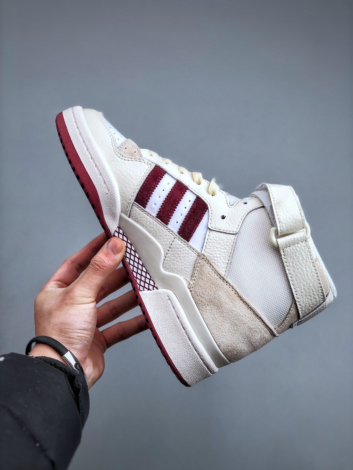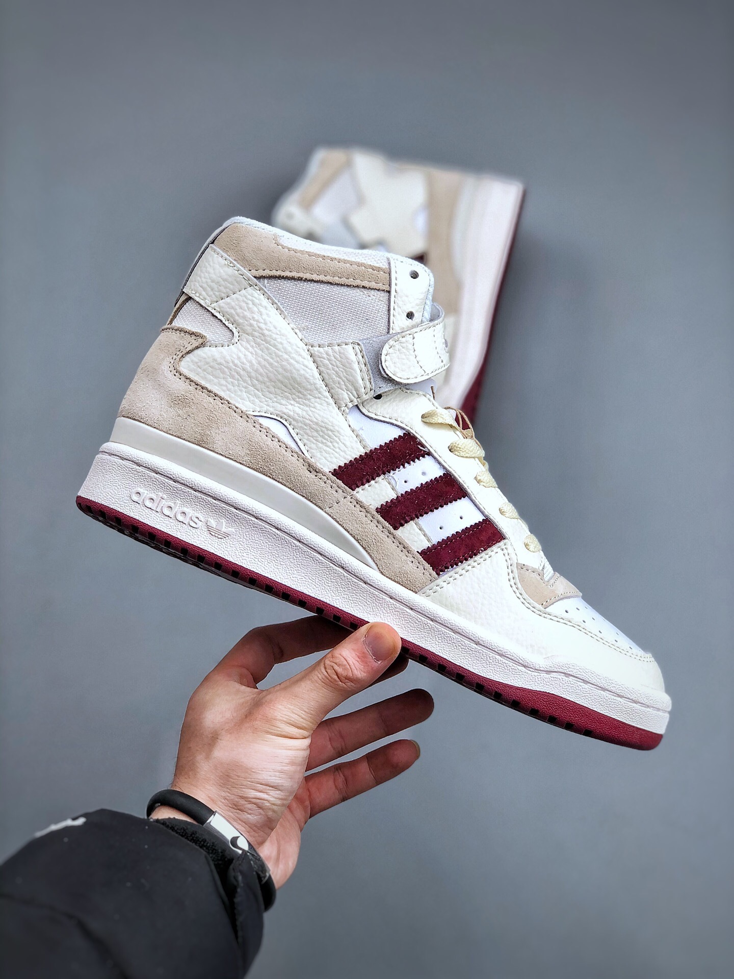 The adidas forum 84 high popular white and red piece classic retro high top basketball shoe features leather panels for a simple and versatile fit and comfort. The mesh shape on the inner side of the midsole serves as the finishing touch, while the rubber on the outsole adds a retro look! Article number: gx1520size: 36-45