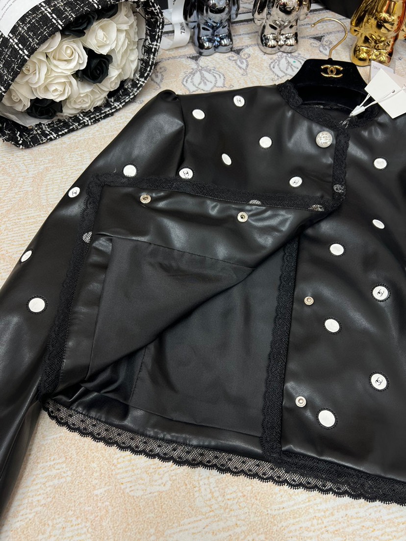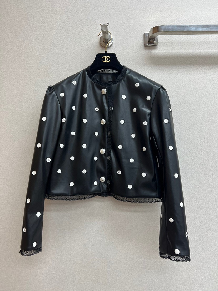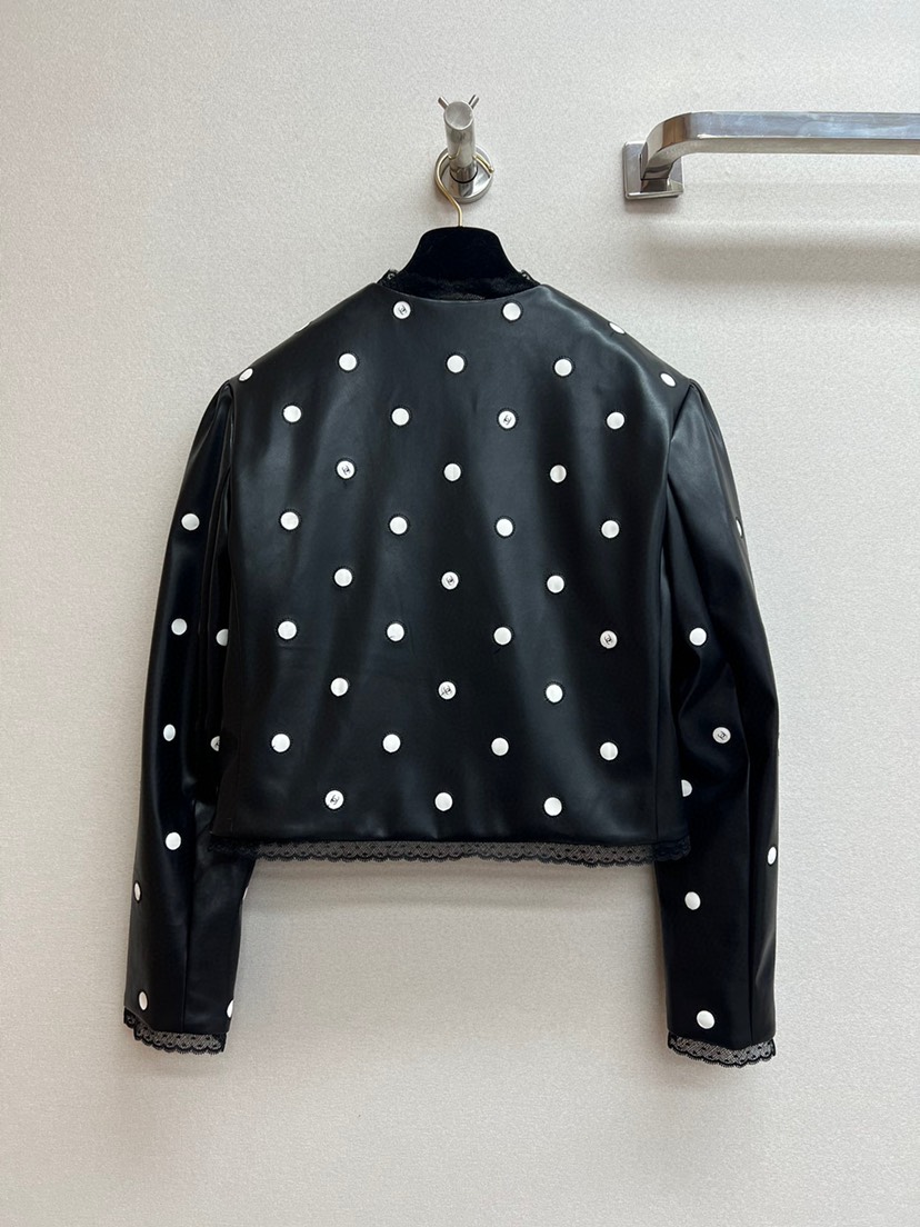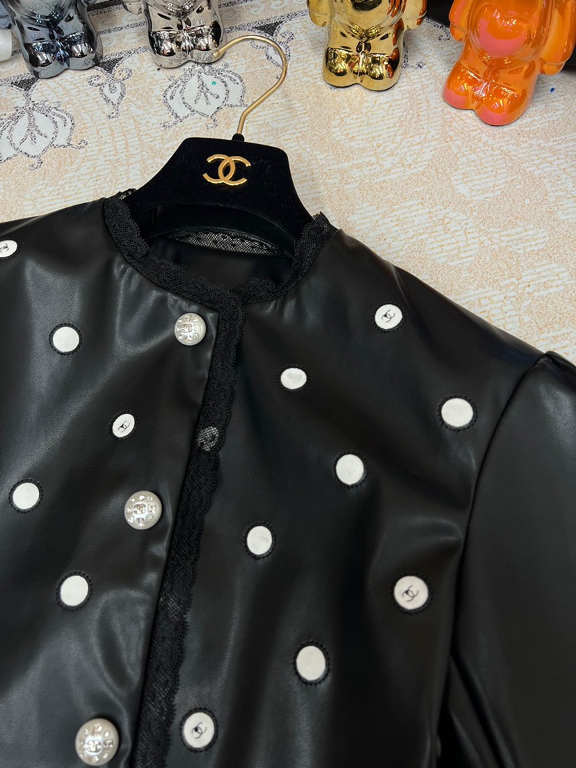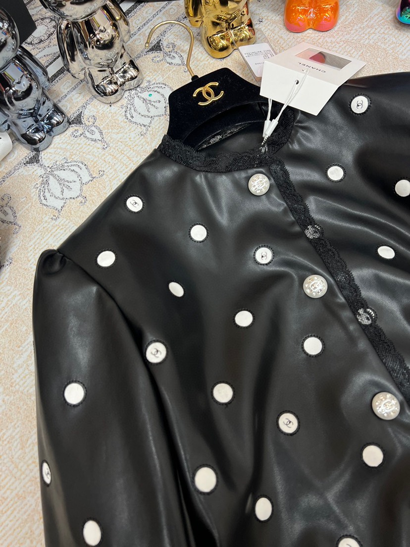 New Chanel 2023 Spring/Summer New Collection Chanel Classic Black Polka Dot Leather Short Coat