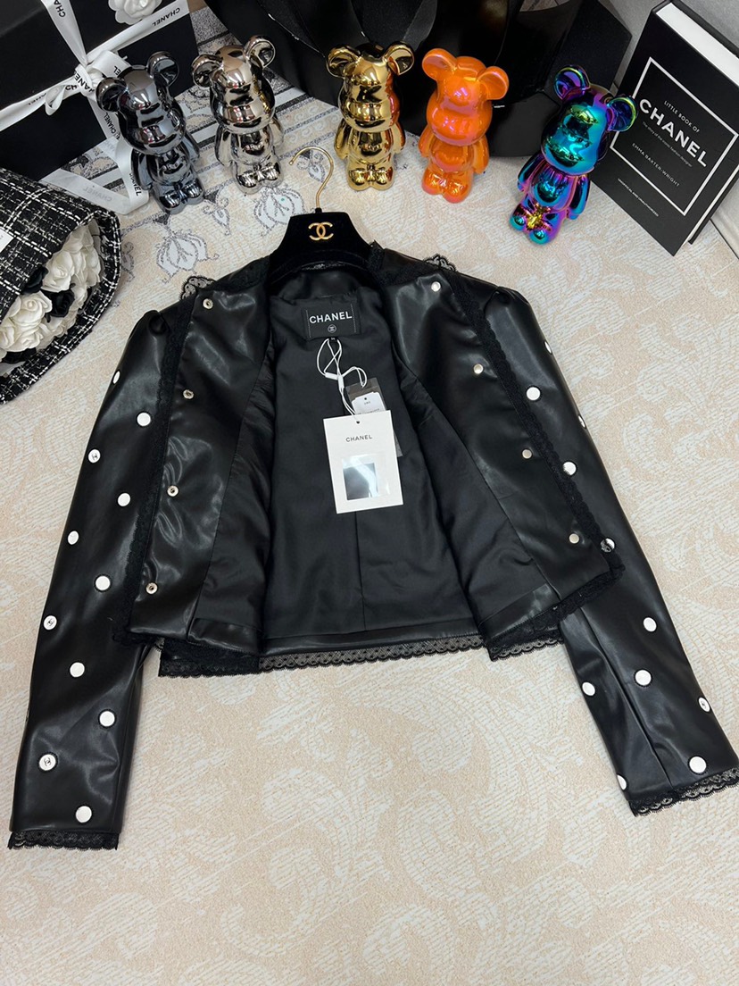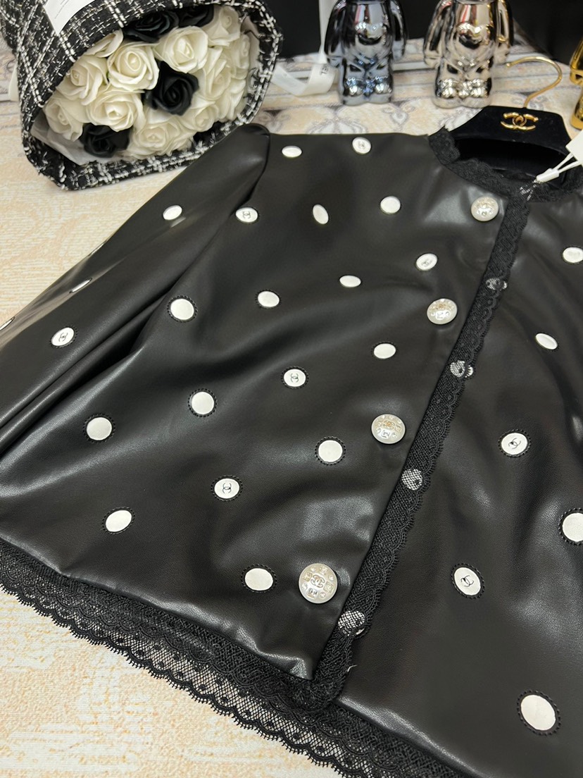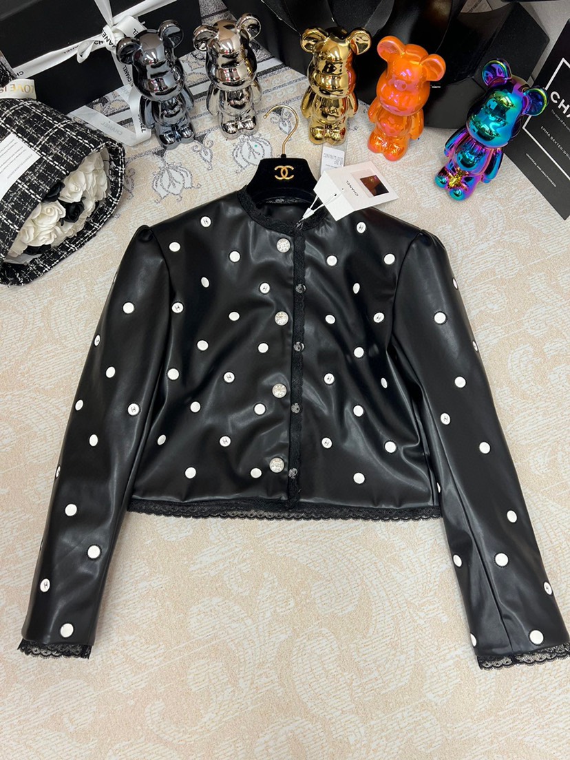 • New Chanel 2023 Spring/Summer New Collection Chanel Classic Black Polka Dot Leather Short Coat