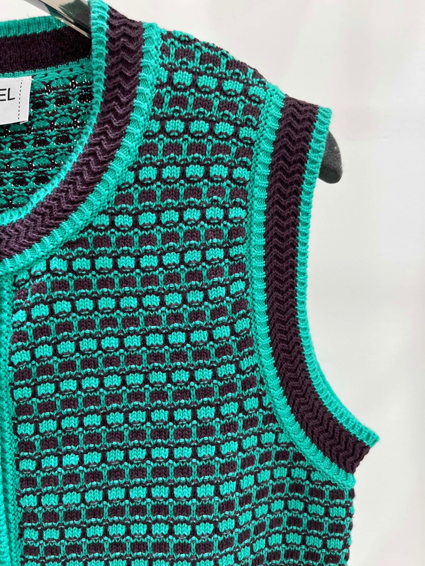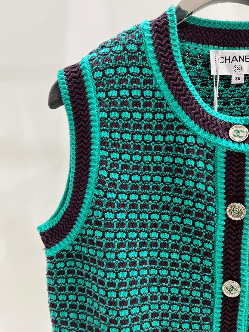 • New  Chanel New Chanel * 23a Gaoding Handicraft Workshop Series Chicken Heart Neck Knitted Vest