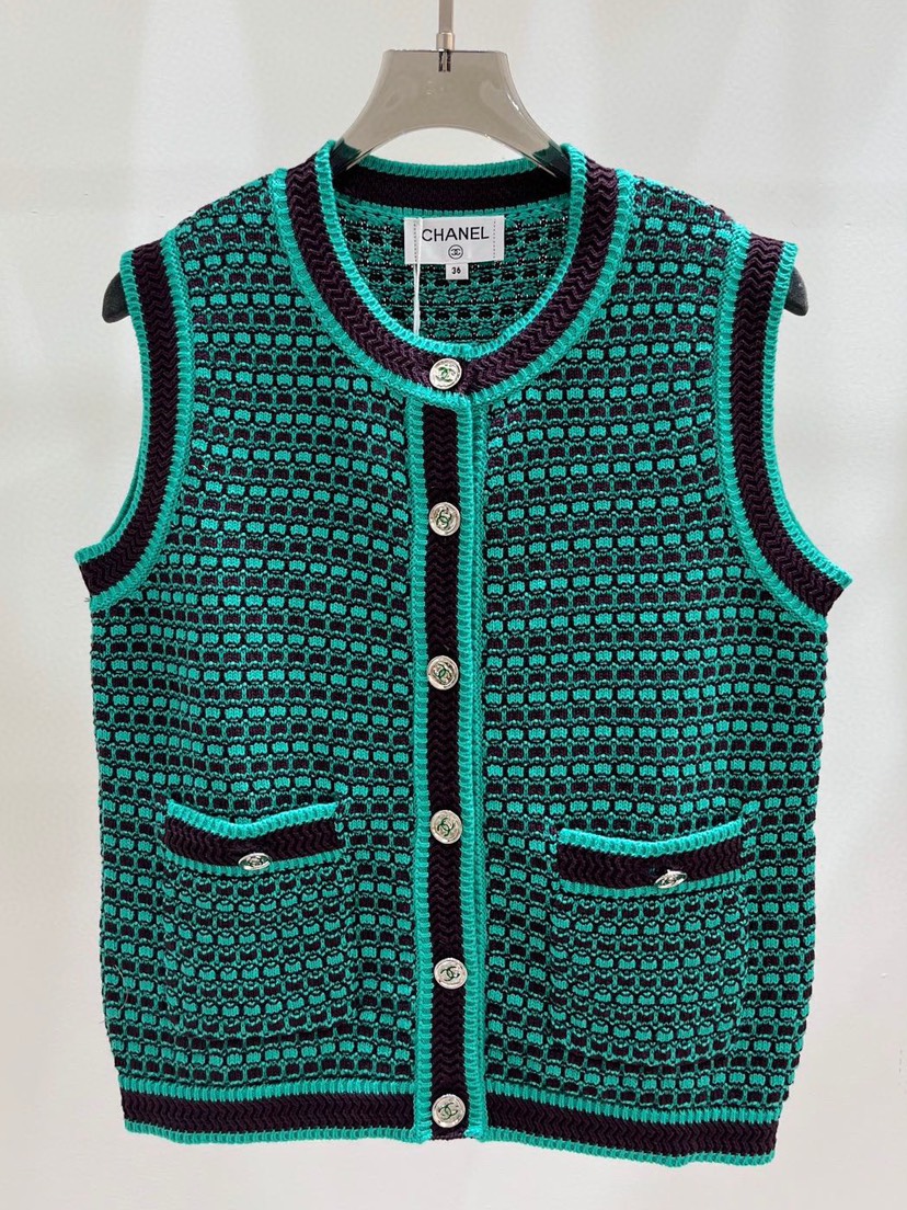 New Chanel New Chanel * 23a Gaoding Handicraft Workshop Series Chicken Heart Neck Knitted Vest