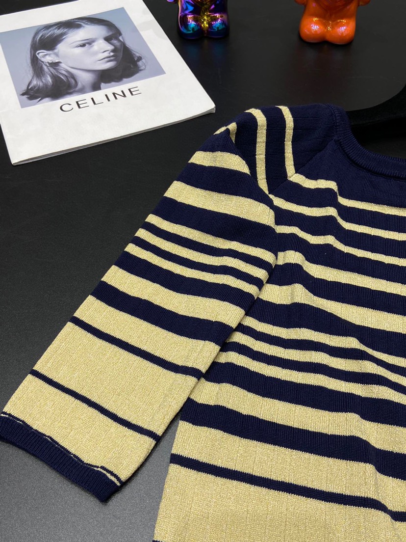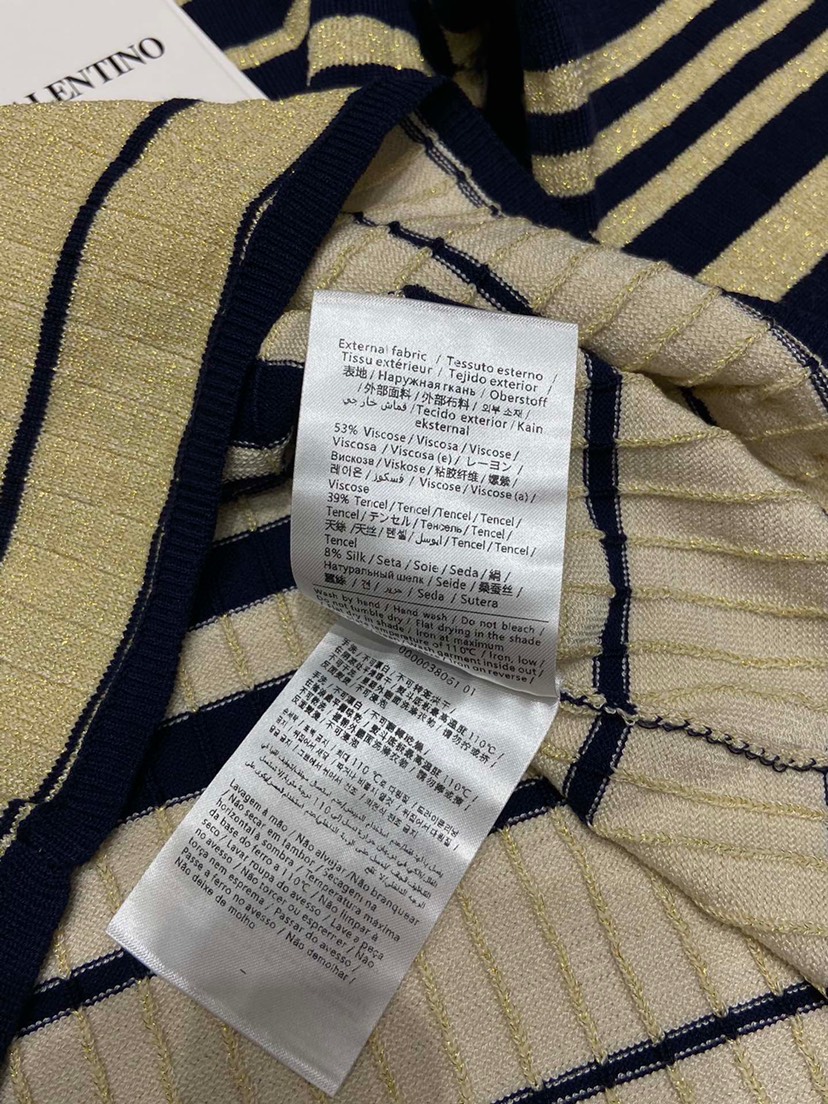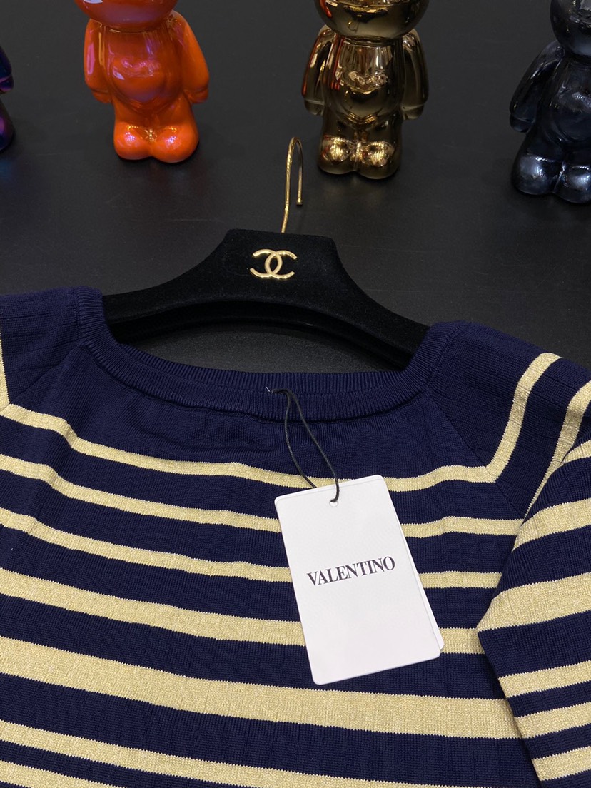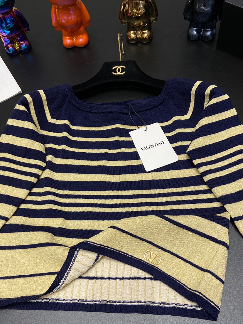 DetailValentino 2023 Latest Contrast Stripe Top 🔥 Royal blue paired with gold creates a sense of luxury throughout 💫 Size SML available from stock