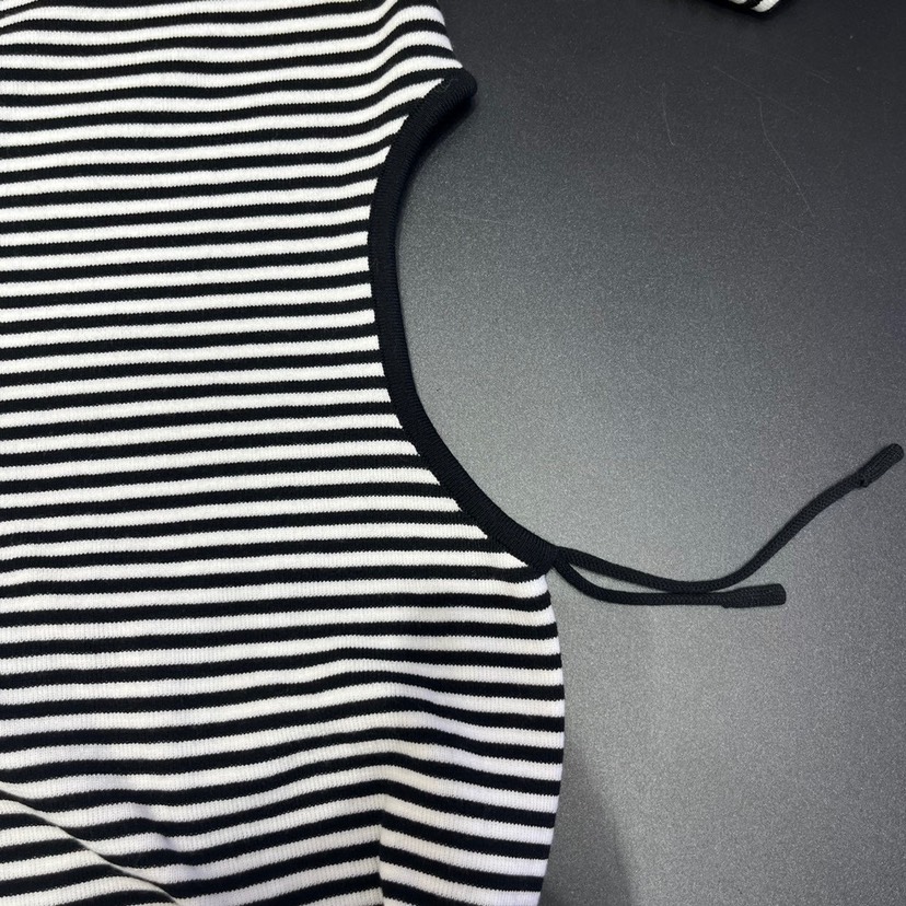 Gucci23 Spring/Summer New Colorblock Stripe Hollow Waist Letter Knitted Dress Color: Black Size: s.m.l